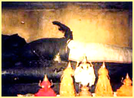 Moolavar in Kidantha kolam in Bujanga sayanam facing East direction.